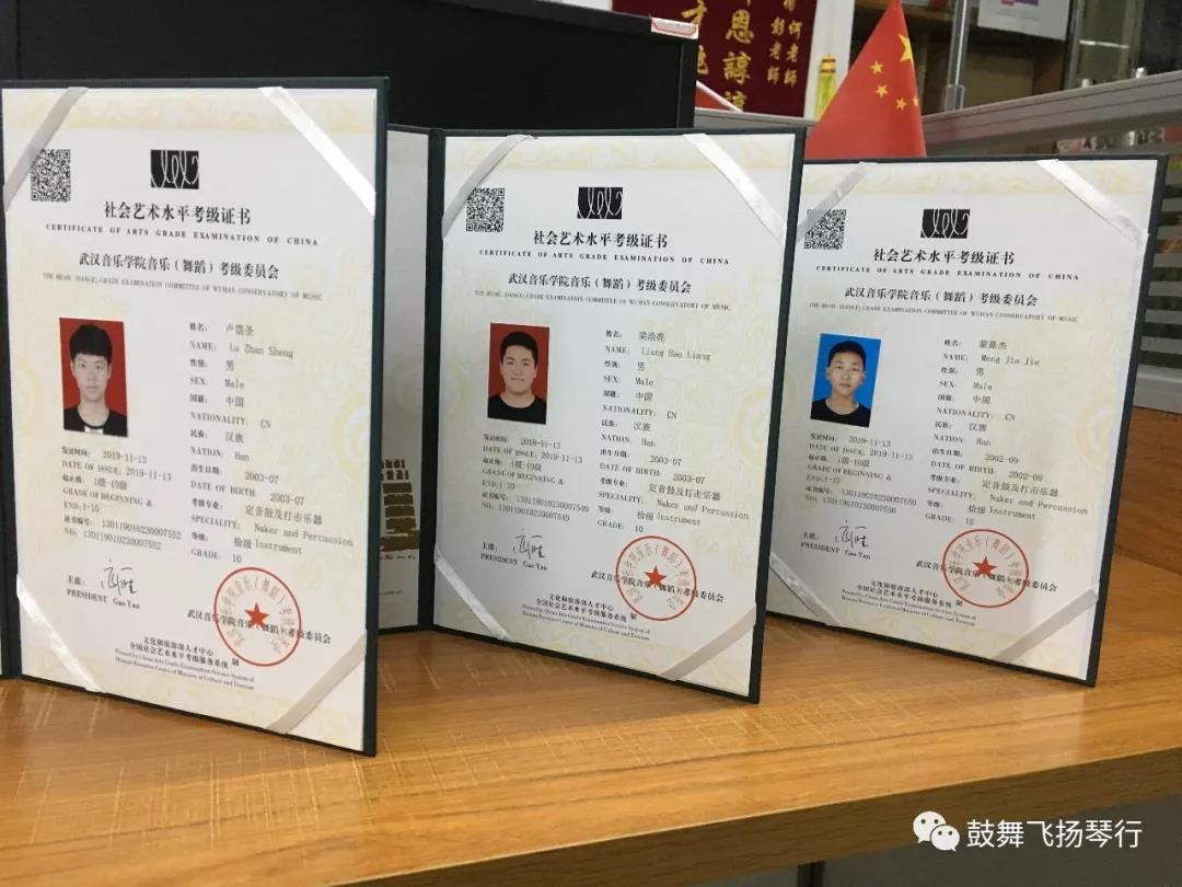 特别恭喜鼓舞飞扬中心的三个学员卢霑圣、梁浩亮、蒙嘉杰三位学员,荣获武汉音乐学院最高考级10级证书.........