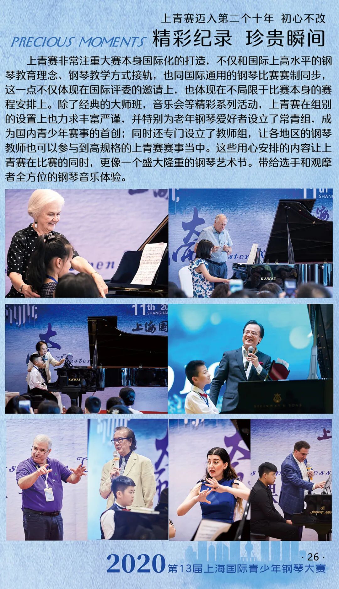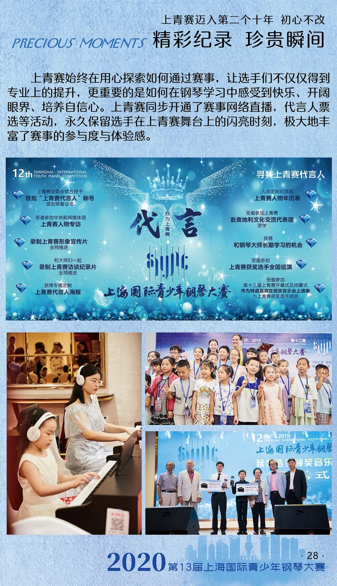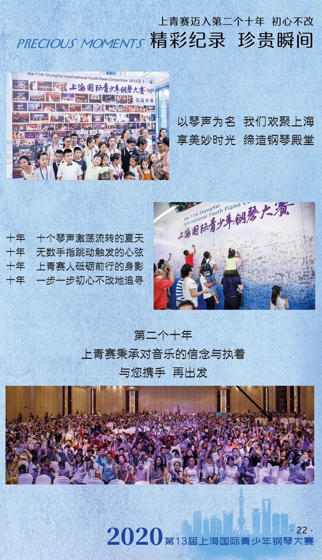 上青赛是一项国际性的青少年钢琴艺术人才推选活动。大赛以上海为中心,在全国30多个省、市、地区设立分赛区,每年参加选拔赛的选手有数万人之众。 2020第13届上青赛已经盛大启动,你们准备好了吗?在报名本届大赛前,请仔细阅读上青赛参赛指南,了解大赛章程、守则、赛程安排,为参赛做好充分准备。期待8月26日与你相聚上海,共同聆听音乐会、大师课,和全国的选手们交流、比赛,开启2020上青赛的美好篇章,留下属于你的珍贵回忆!