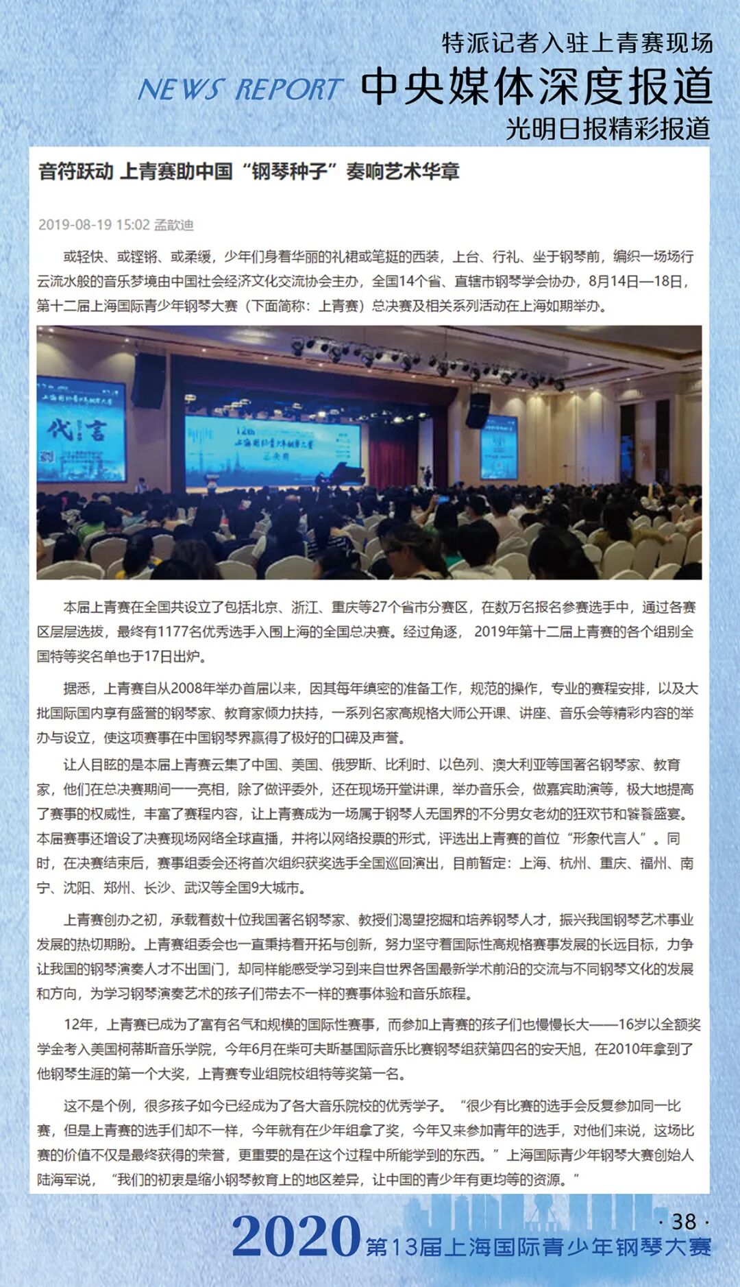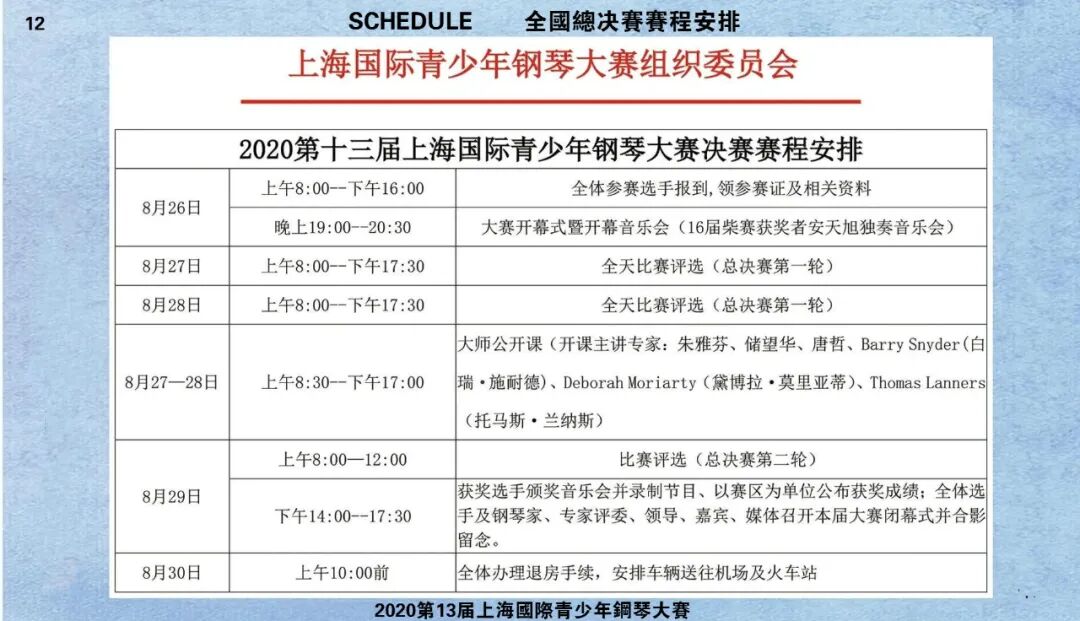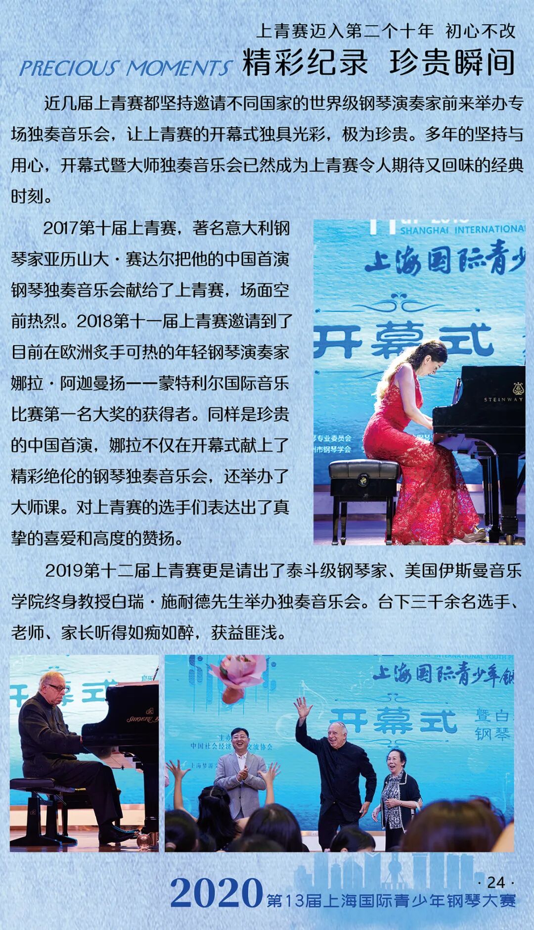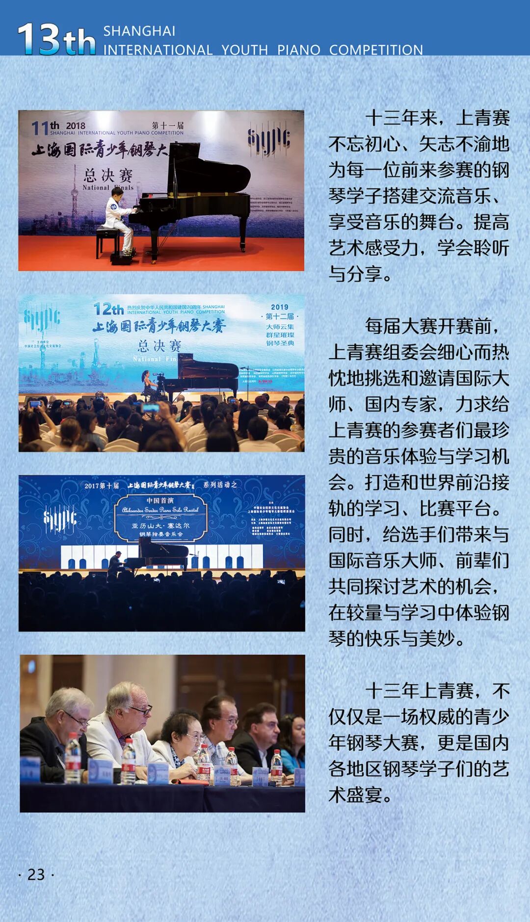 上青赛是一项国际性的青少年钢琴艺术人才推选活动。大赛以上海为中心,在全国30多个省、市、地区设立分赛区,每年参加选拔赛的选手有数万人之众。 2020第13届上青赛已经盛大启动,你们准备好了吗?在报名本届大赛前,请仔细阅读上青赛参赛指南,了解大赛章程、守则、赛程安排,为参赛做好充分准备。期待8月26日与你相聚上海,共同聆听音乐会、大师课,和全国的选手们交流、比赛,开启2020上青赛的美好篇章,留下属于你的珍贵回忆!