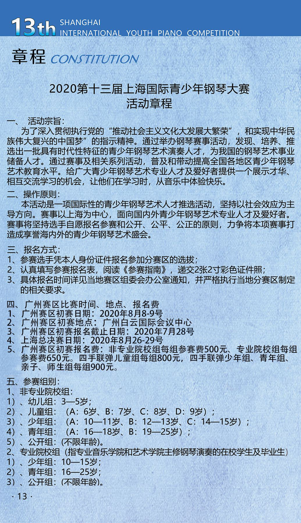 2020第13届上海国际青少年钢琴大赛-广州赛区佛山分赛区|赛事章程|报名方式|